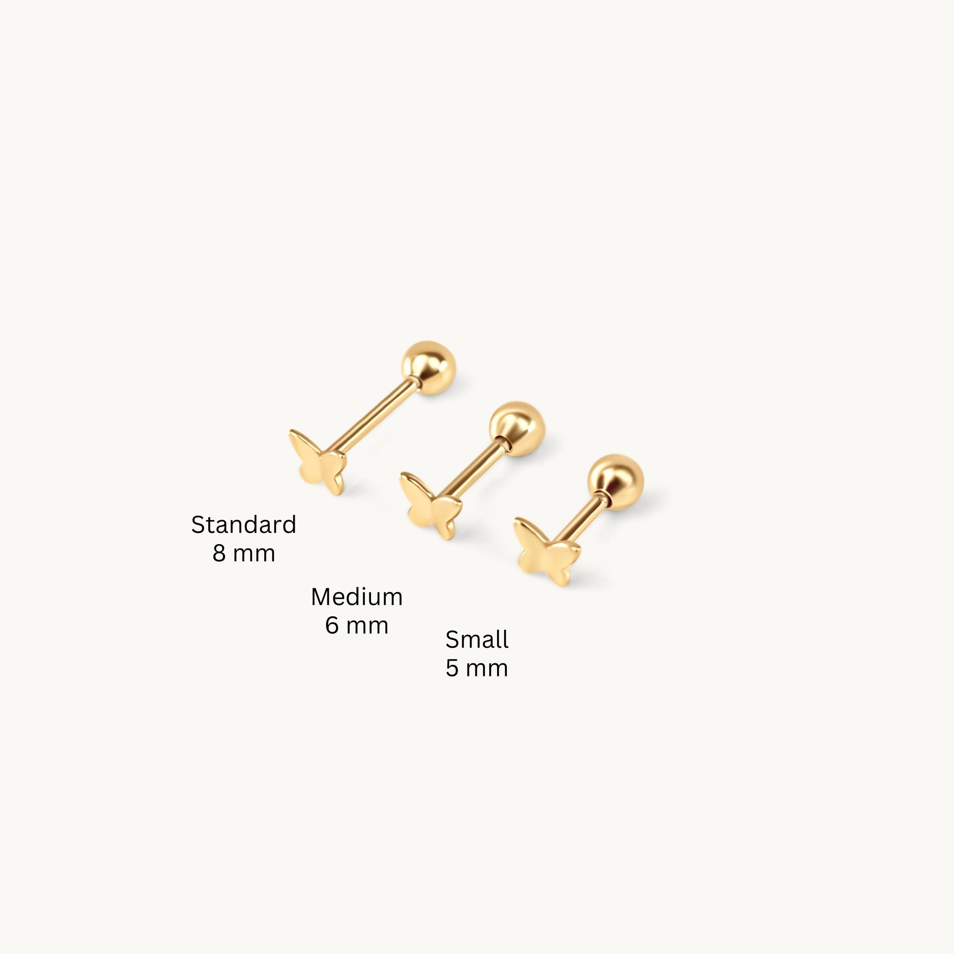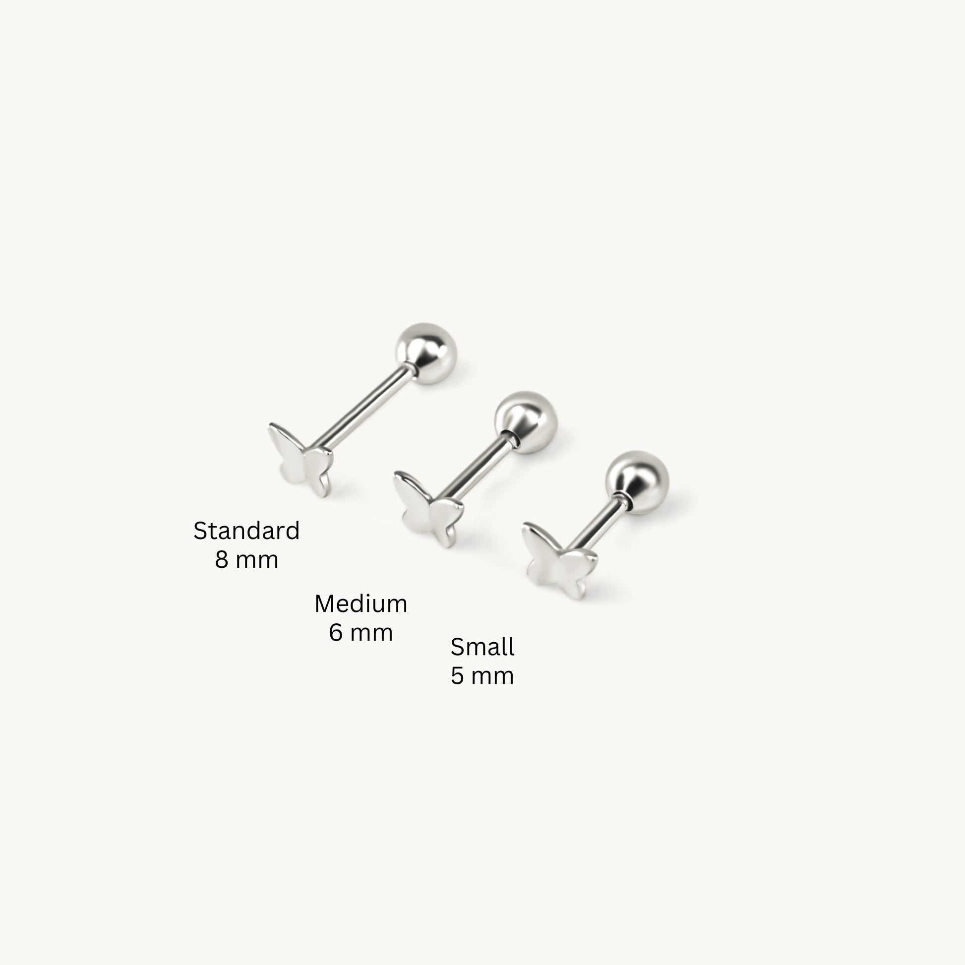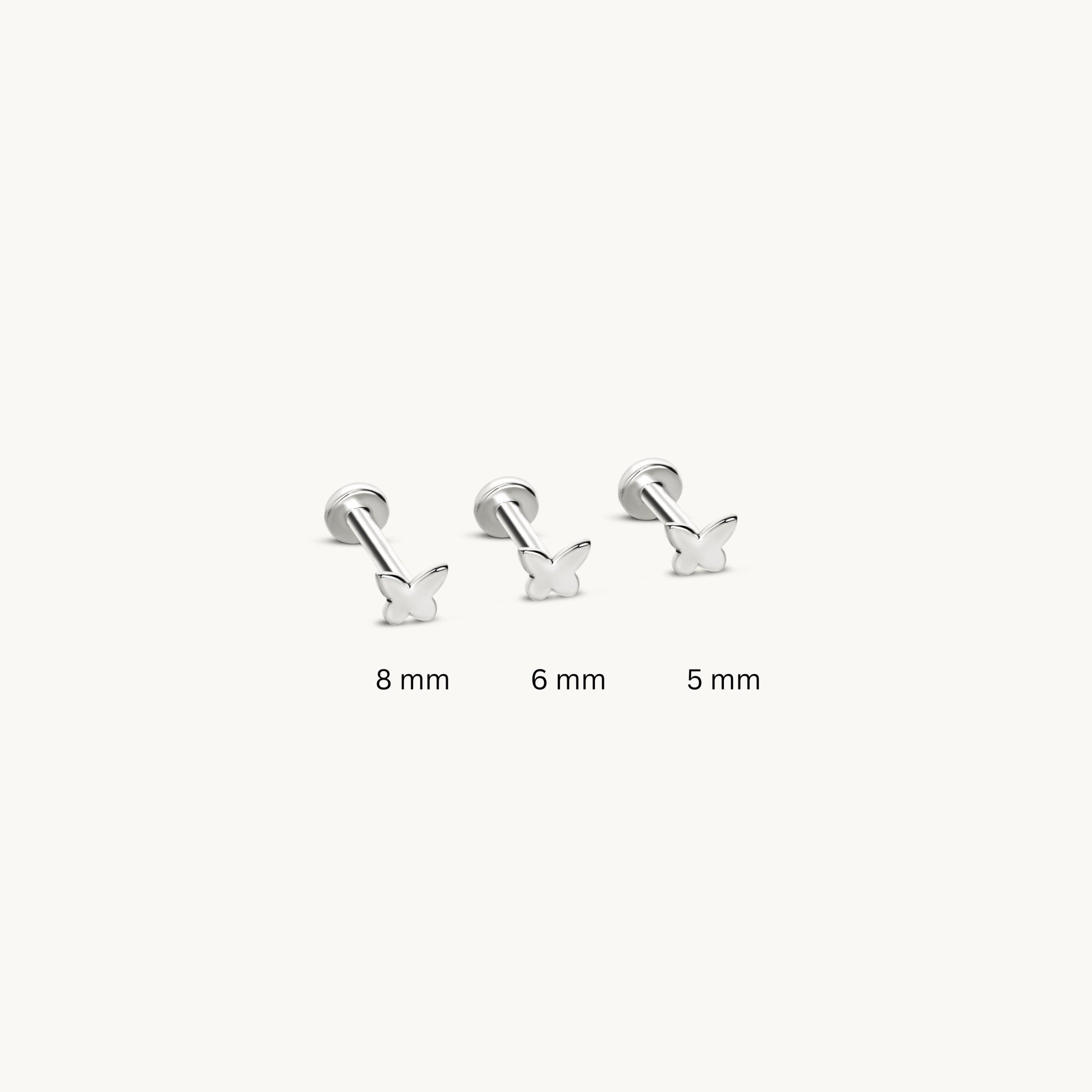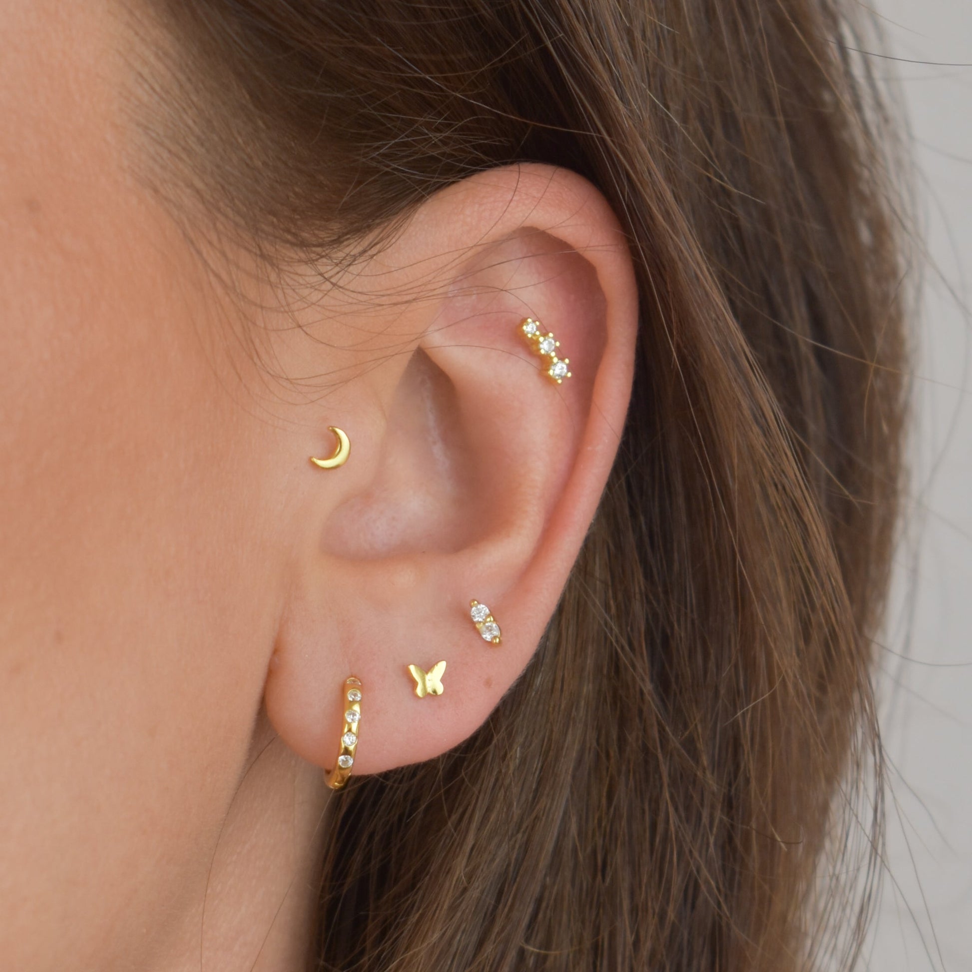 Verleihe Deinem Ear-Candy-Look einen süßen, funkelnden Akzent mit unserem Butterfly Piercing. Der zarte Schmetterling bringt einen femininen Glow an Dein Ohr und lässt sich dank drei wählbarer Stablängen perfekt an jede Ohrstelle anpassen – ob Helix, Tragus, Conch oder Lobe.